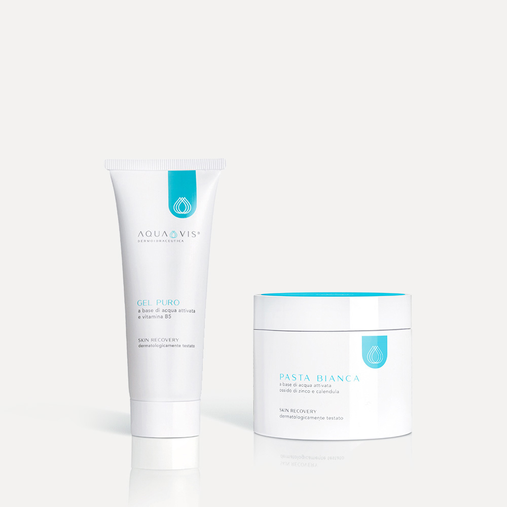 2 produkty niezbędne dla potrzeb całej rodziny: Gel Puro Rigenerante Aquavis® pomaga zwalczać podrażnienia i najbardziej widoczne problemy skórne, takie jak trądzik, blizny potrądzikowe, pękania skóry spowodowane zimnem, swędzenie, stany zapalne skóry, oparzenia, podrażnienia po tatuażach oraz otarcia. Pasta Bianca Aquavis®: to idealny produkt dla najbardziej delikatnej skóry, również tej najmłodszych. Wzmacnia barierę skórną, doskonała w pielęgnacji dermatytów, podrażnień od tarcia, ukąszeń owadów, świądu, odparzeń pieluszkowych oraz łuszczenia skóry.